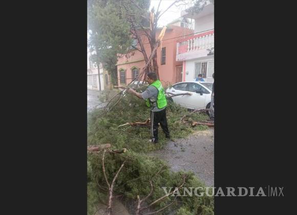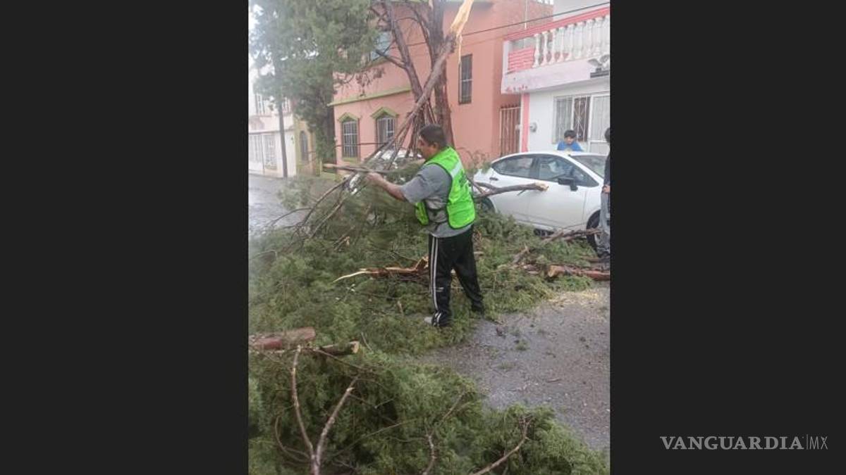 Lluvias y fuertes vientos provocan caída de árboles y encharcamientos en el sur de Saltillo (video)
