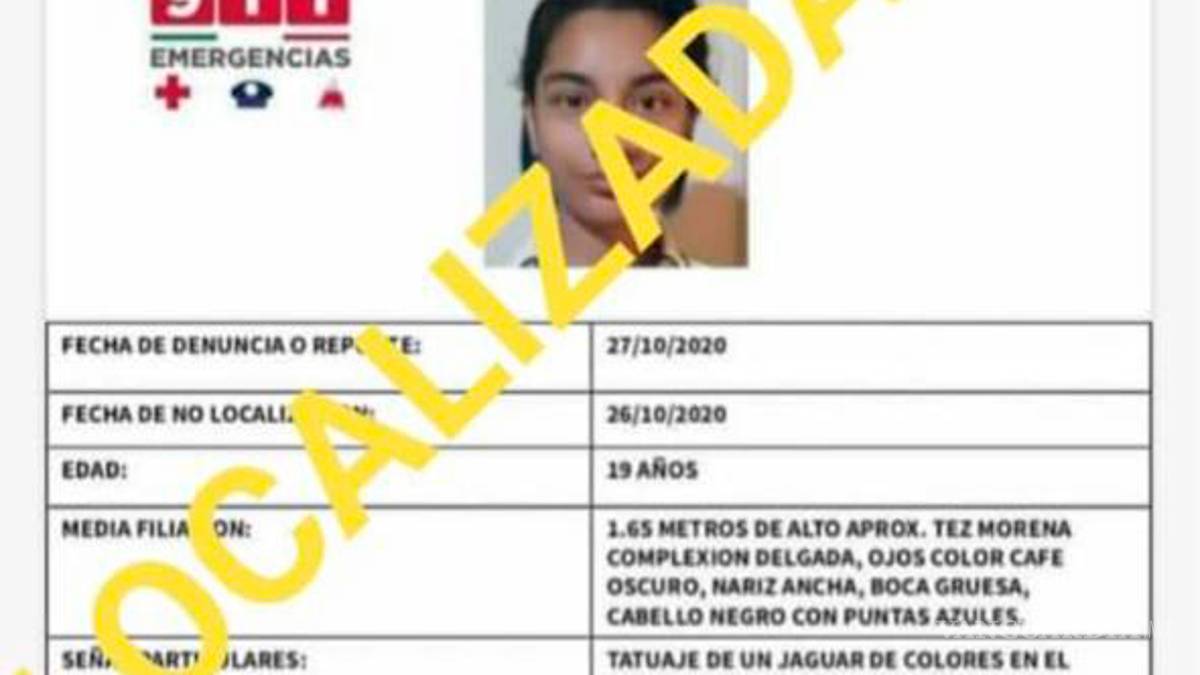 La madrugada de este lunes fue localizada la joven María Fernanda Tirado Gloria, quien contaba con reporte de no localizadas desde el pasado 26 de octubre en Saltillo. Su madre Magali Gloria, dio a conocer a través de sus redes sociales que su hija de 19 años ya se encontraba con ellos.