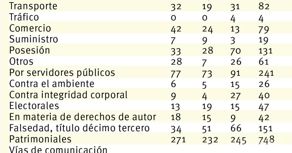 También incrementaron los delitos cometidos por servidores públicos, contra el ambiente y gestión ambiental, contra la integridad corporal y de falsedad.
