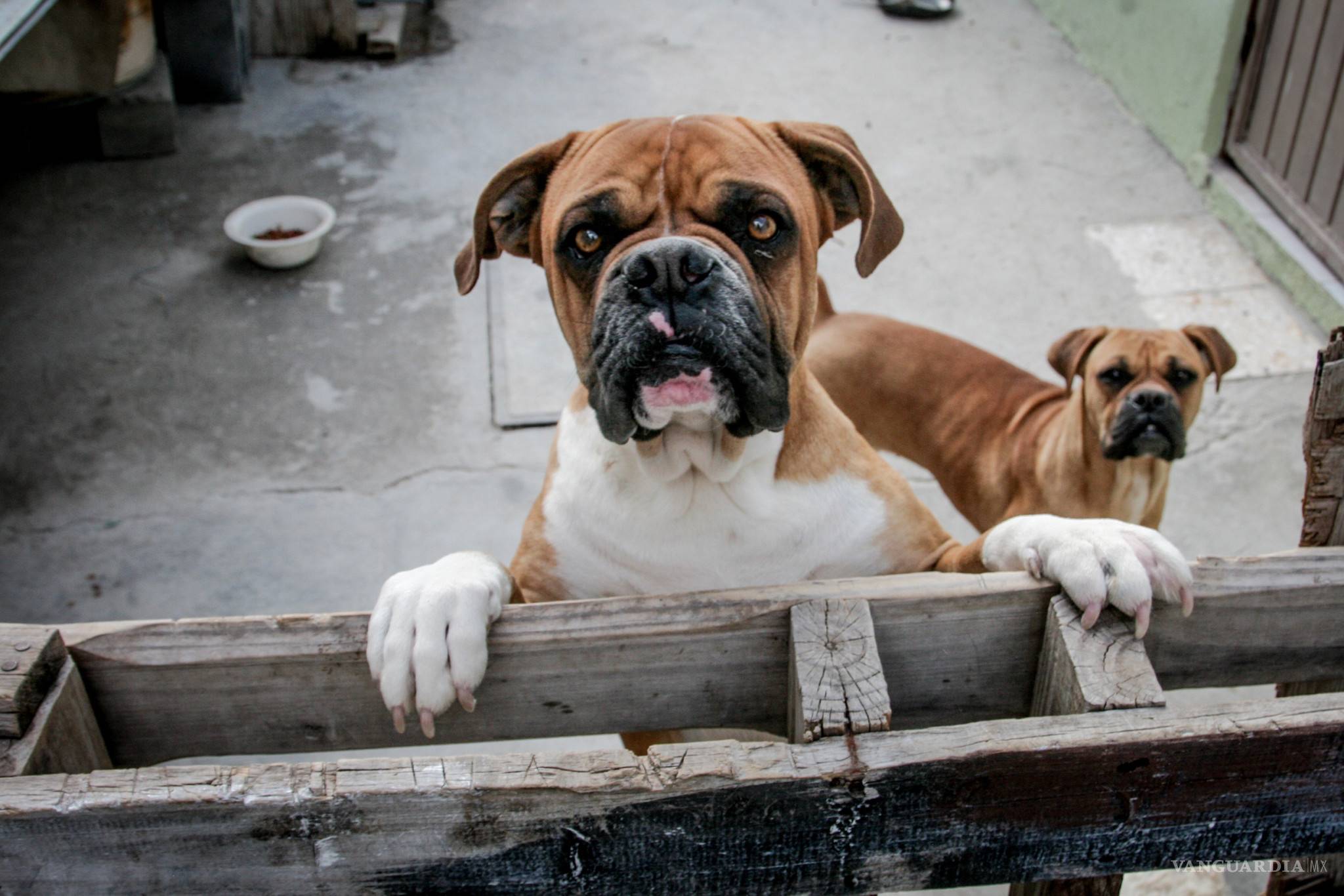 Al fondo del patio de la casa de Martín, calle Porfirio Cadena, colonia Nuevo Amanecer, hay dos bóxer grandes, una frecnh, una chihuahua y una gata.