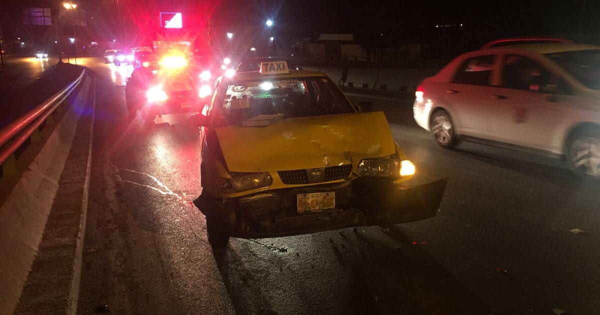 Alberto que circulaba en un automóvil tipo Chevy con placas spr 7003 de Nuevo León, iba de sur a norte por periférico Luis Echeverría Álvarez y a unos metros de la central de abastos impacto a un taxista que ya iba Asu domicilio a descansar.
