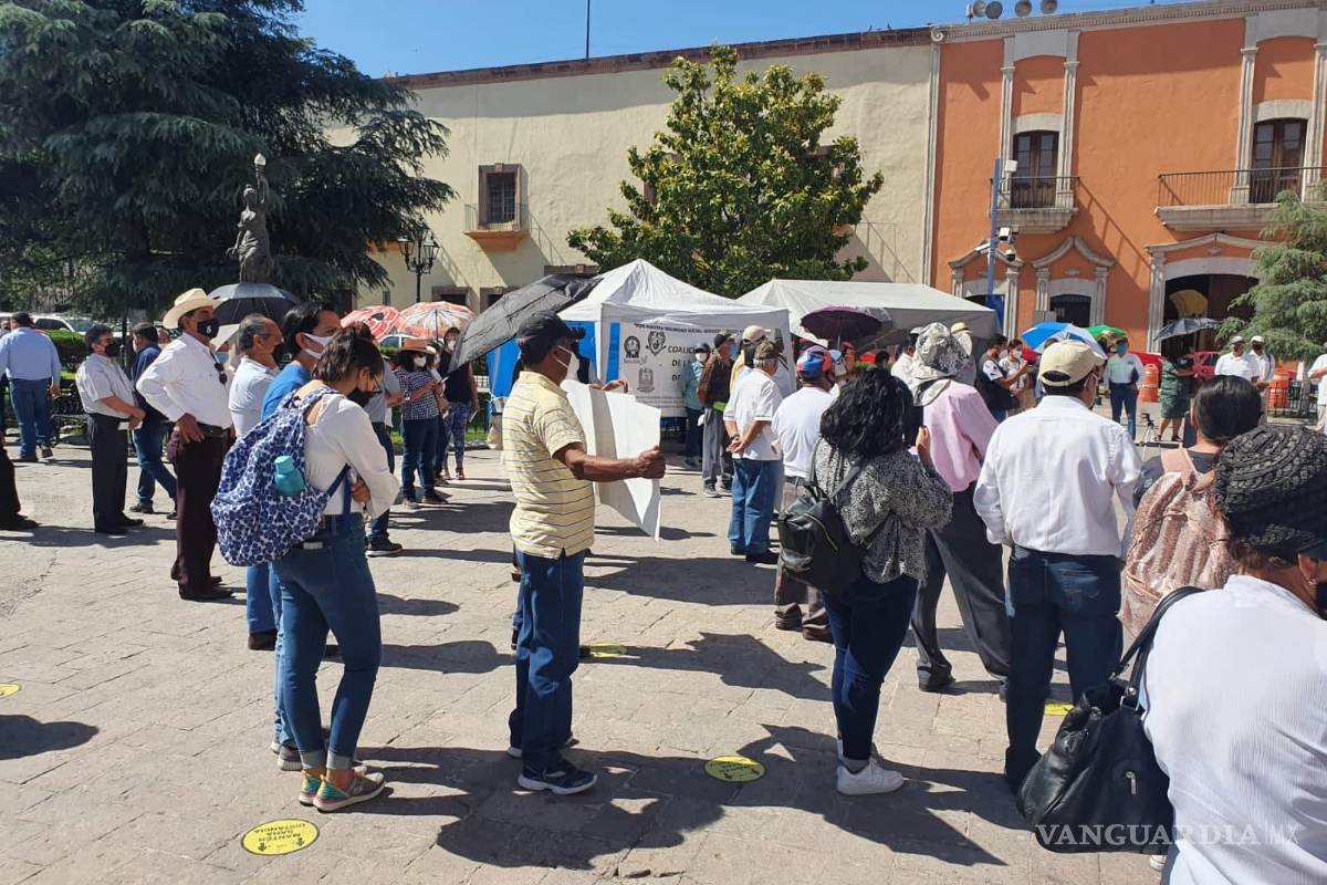 Maestros pensionados montan plantón frente a Palacio de Gobierno de Coahuila