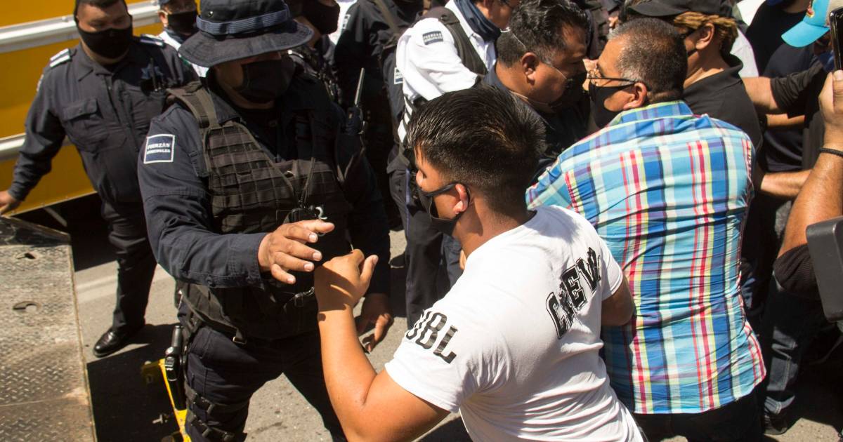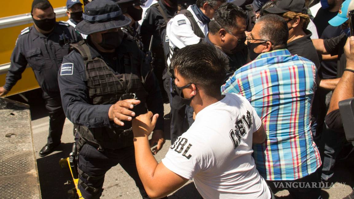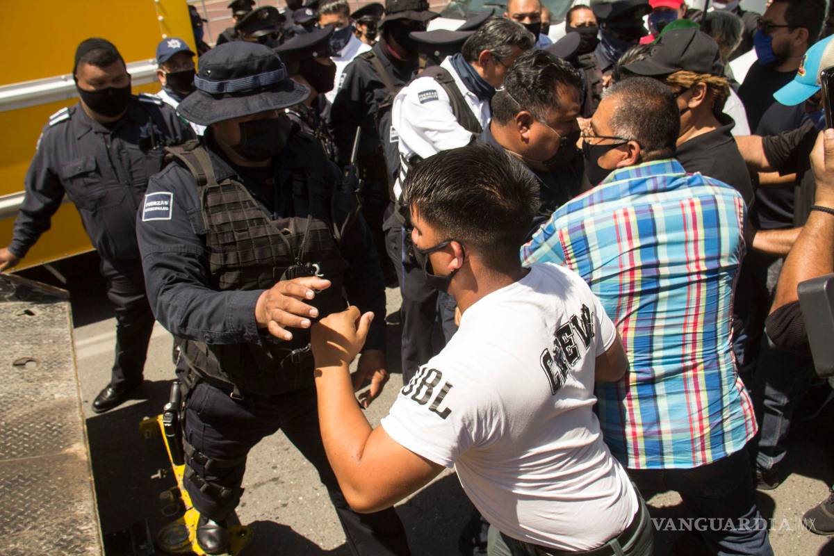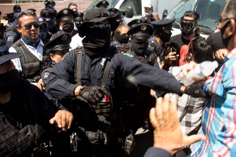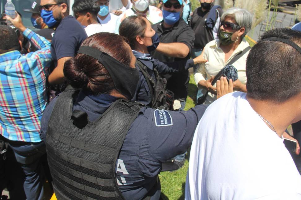 Poco antes del mediodía la manifestación se convirtió en una trifulca, luego de que los uniformados intentaron retirar a los manifestantes y estos se negaron, por lo que comenzaron los empujones, golpes entre algunos de los participantes y la Policía Municipal de Saltillo que trataba de contenerlos.