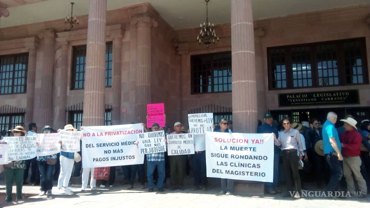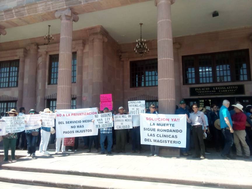 Un grupo de más de 300 integrantes de la Coalición de Trabajadores de la Educación de Coahuila presentaron este martes al mediodía ante el Congreso del Estado una iniciatva de reformas a las Leyes de la Dirección de Pensiones y el Servicio Médico de la Sección 38 del SNTE y se derogue el pago del 10 por ciento de las cuotas económicas a dichas instituciones.