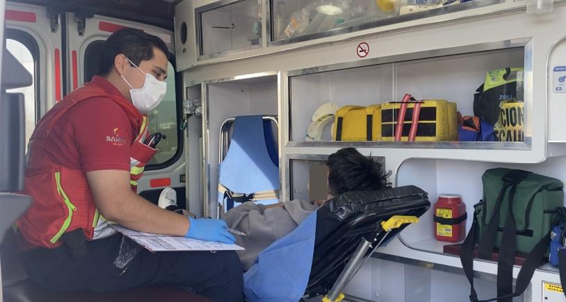 Un menor de 16 años fue trasladado a la Clínica 88 del IMSS en Ramos Arizpe, luego de impactarse contra un automóvil dentro del parque industrial Santa María.