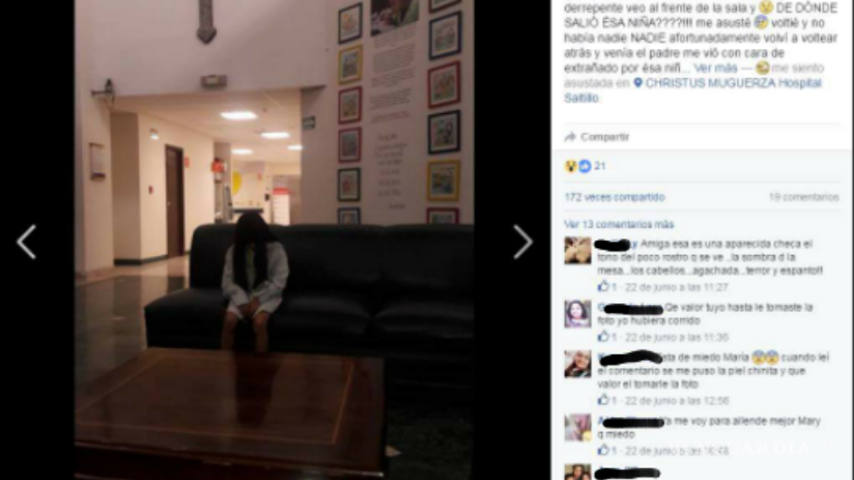 Una foto en redes sociales subida por una usuaria saltillense, ha causado revuelo en la ciudad. Se trata de una imagen captada en el Hospital Christus Muguerza de Saltillo en el que se aprecia la figura de una misteriosa niña sentada en la sala de espera de dicha institución. La imagen viene acompañada con la siguiente descripción: