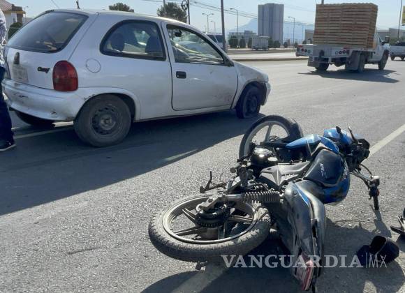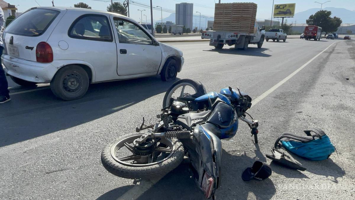 Motociclista resulta herido tras choque con auto que le cerró el paso en Saltillo