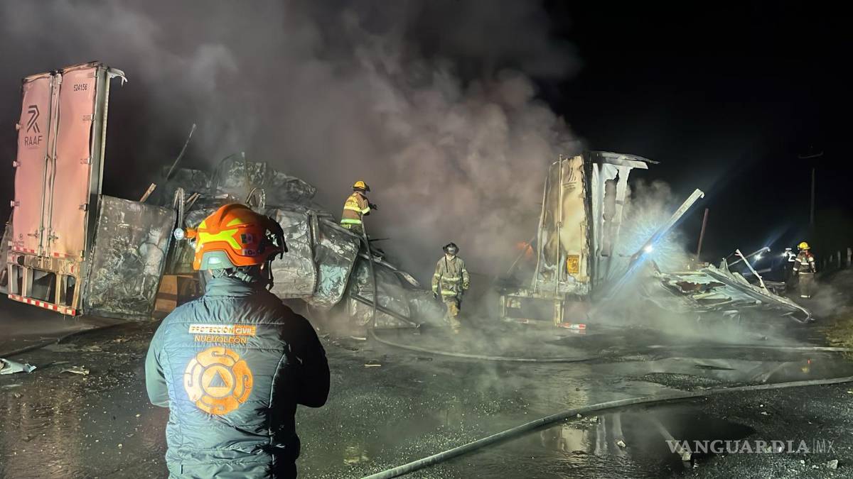 El accidente ocurrió la noche del jueves y movilizó a cuerpos de emergencia, incluyendo Protección Civil de Nuevo León y García, Bomberos y la Guardia Nacional. A pesar de los esfuerzos por sofocar las llamas, en el interior de uno de los vehículos se encontró un cuerpo completamente calcinado.