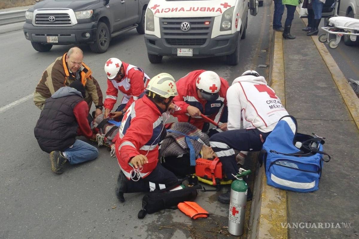 Pero al llegar al inicio de ese carril, a la altura de la colonia Saltillo 400, un peatón se atravesó de manera intempestiva dándose el impacto entre el vehículo y la persona que caminaba por el sitio.