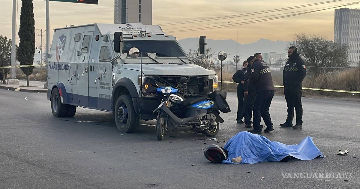 Muere motociclista tras choque con camión de valores en Saltillo