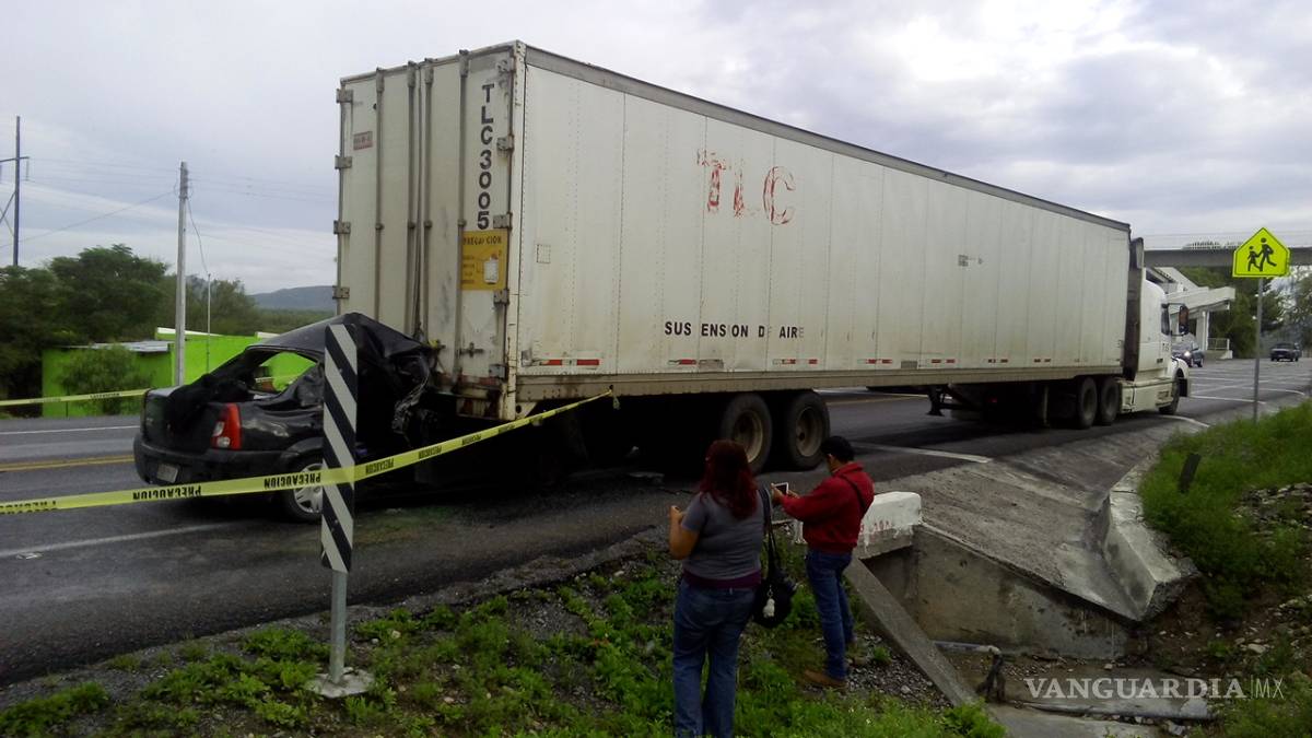 Fue a las 06:40 horas cuando se reportó el fuerte accidente al Sistema Estatal de Emergencias, en donde se informó sobre un vehículo que se había estrellado en la parte trasera de la caja de un tráiler, dirigiéndose de inmediato al lugar los cuerpos de rescate de Saltillo, al llegar encontraron al conductor del vehículo siniestrado y dos personas más-un hombre y una mujer- quienes se encontraban severamente lesionados.