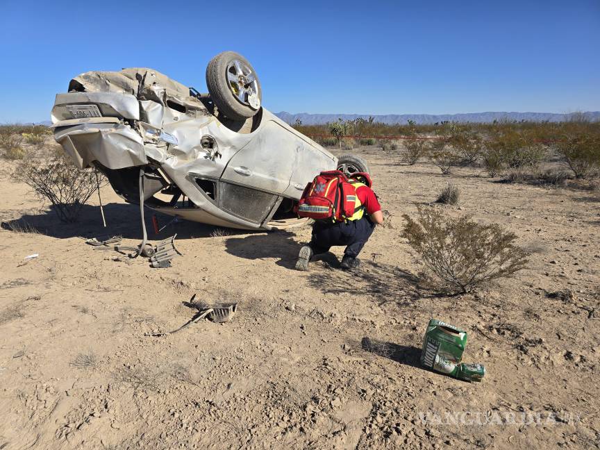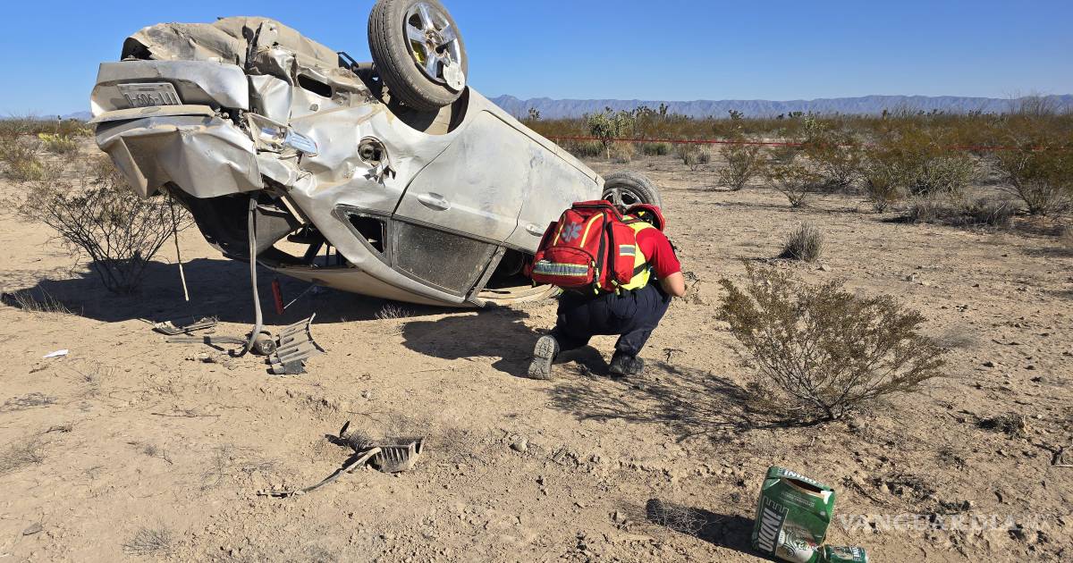 Mueren dos tras salir del camino y volcar en la carretera Monclova