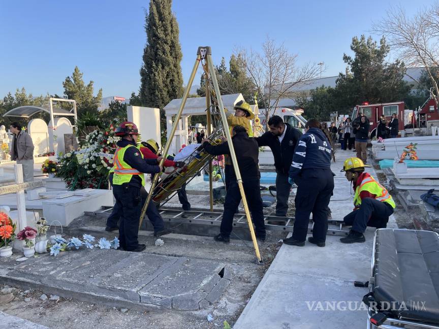 Una mujer que acudió a dar el último adiós a un ser querido en el panteón Santo Cristo cayó al fondo de una cripta, donde permaneció por más de veinte minutos.
