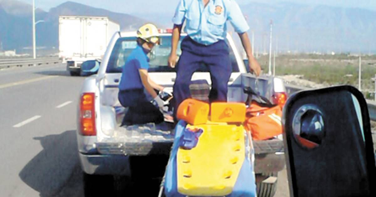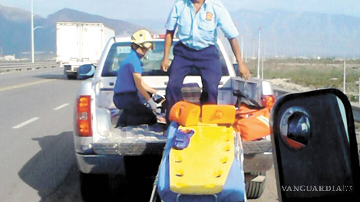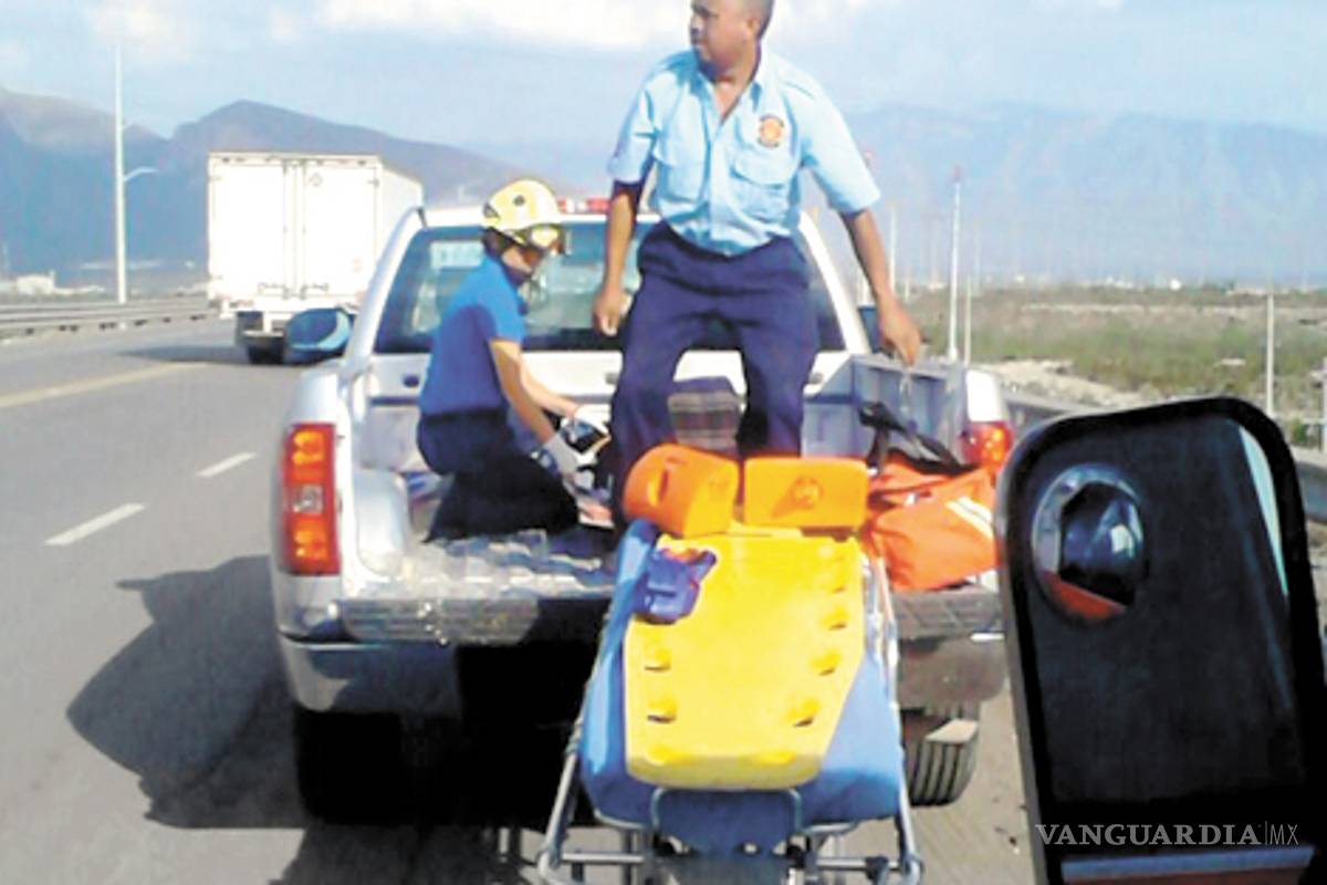 En el cruce de la carretera Monterrey-Saltillo se interceptó a la ambulancia para hacer entrega de la lesionada, a la cual le dieron atención prehospitalaria.