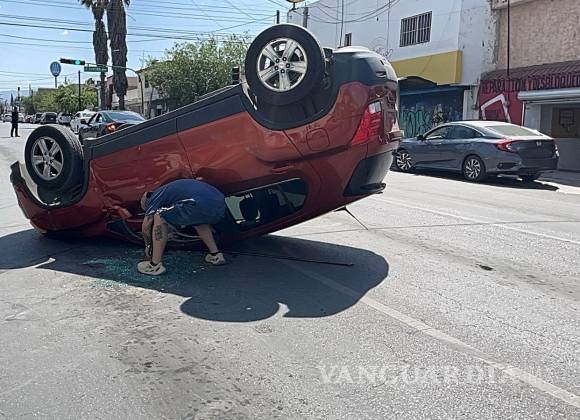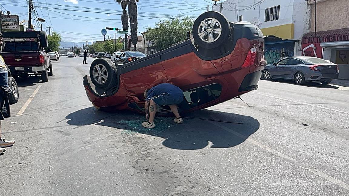 Mujeres chocan y terminan volcadas, en Saltillo
