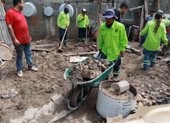 Las acciones se centraron en sectores como Nazario S. Ortiz Garza, La Purísima y Omega, donde cuadrillas municipales realizaron limpieza de viviendas, retiro de escombro y basura, desazolve de agua estancada y apoyo con mobiliario dañado. En las calles Novena, Octava, Séptima y Segunda, brigadas atendieron daños por inundación dentro de los hogares.