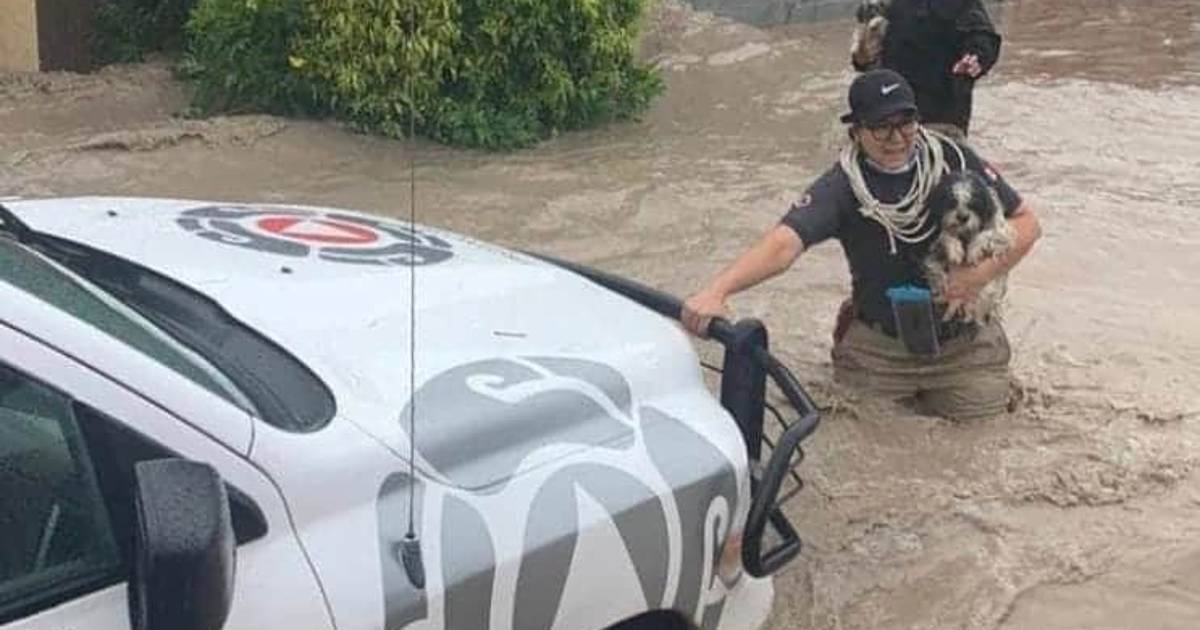 Después de poner a salvo a una pareja, Saraí regresó al hogar para buscar los dos perros de la familia: los encontró y salió con uno en cada brazo. En redes sociales se compartió la imagen de esta hazaña, una emergencia que atendieron elementos de Protección Civil y Bomberos, Policía Municipal y cuerpos de seguridad.