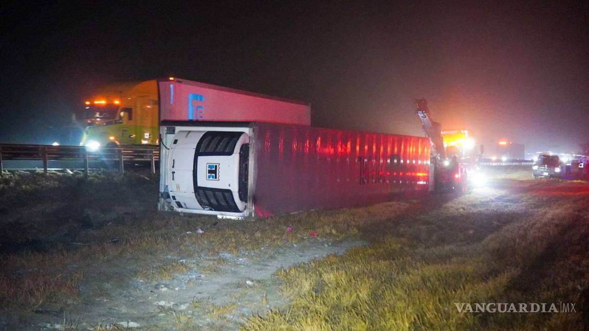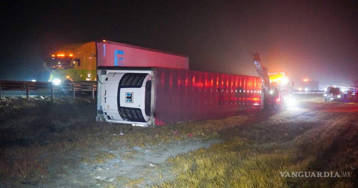 Niebla causa volcadura de tractocamión, en Arteaga
