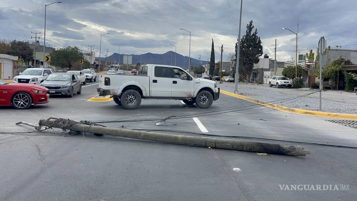 Un tráiler y un camión de carga derribaron un poste y cables la tarde del miércoles en la prolongación Nazario Ortiz Garza, provocando el cierre temporal de la vialidad
