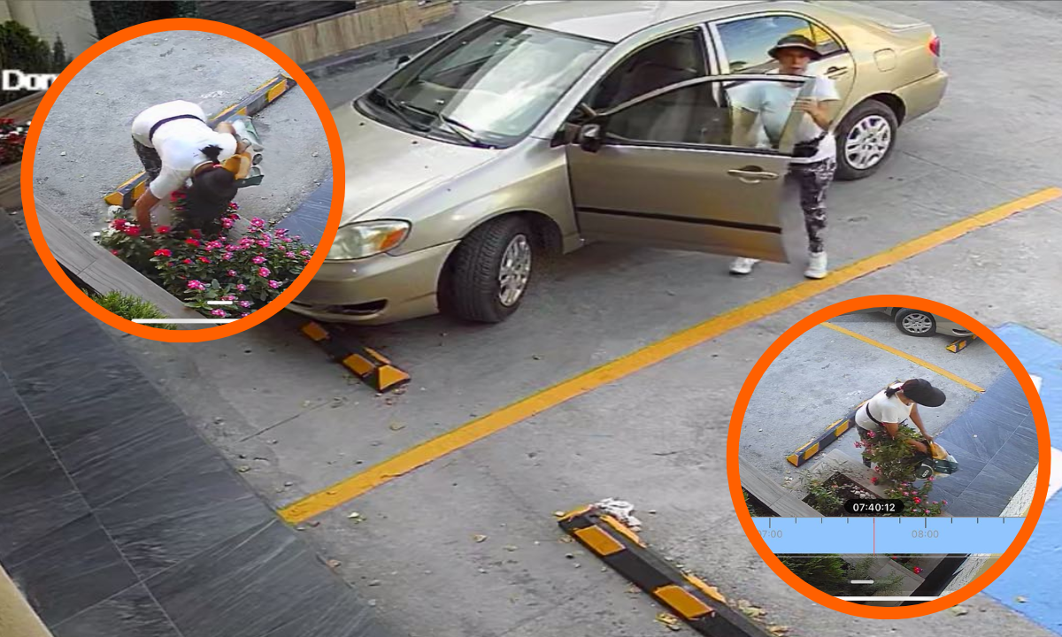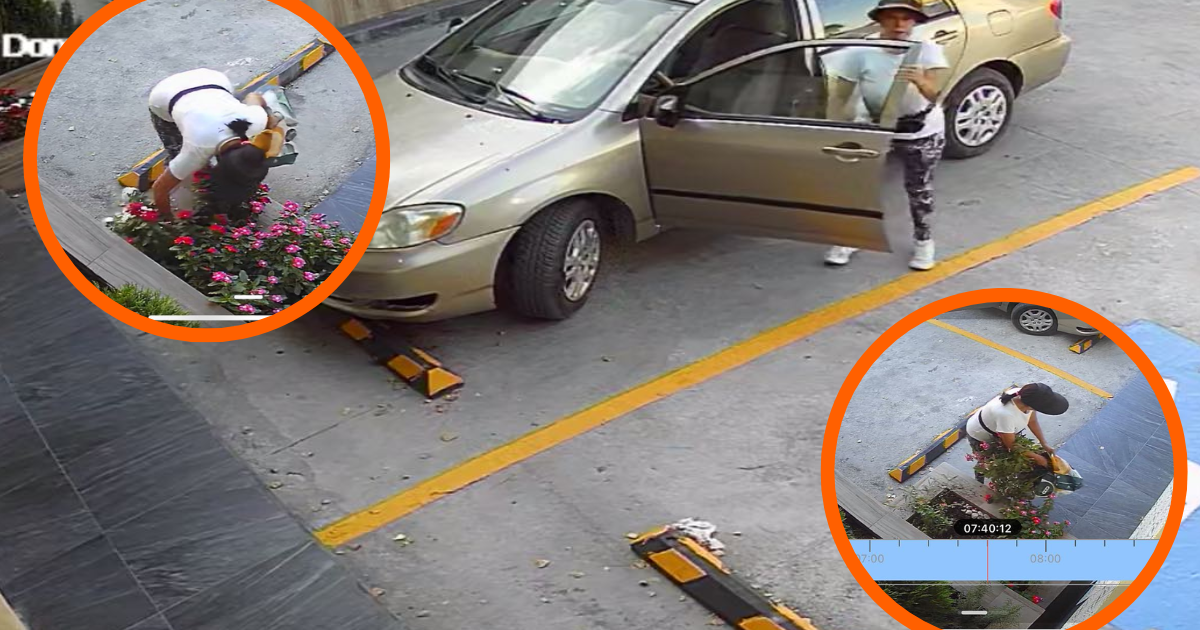 ‘Nuestro primer robo’: exhiben a mujer que se llevó flores del jardín de un negocio (fotos)