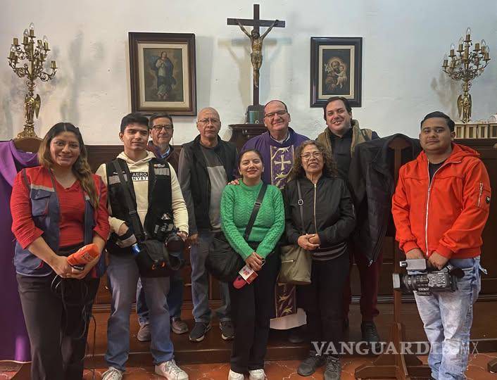 González García impartió su bendición a los reporteros que cubren la fuente de la Diócesis de Saltillo, lo cual tuvo lugar en la sacristía de la Catedral de Santiago.