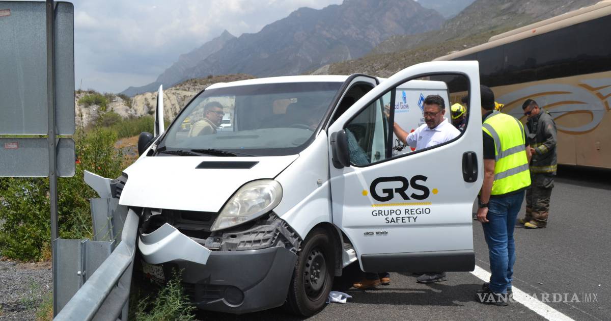 Contra una barrera metálica de contención terminó una camioneta de una empresa de seguridad industrial, luego de que el operador perdió el control de la misma al circular por la carretera Monterrey-Saltillo con dirección a esta ciudad.