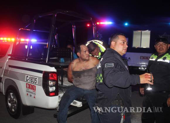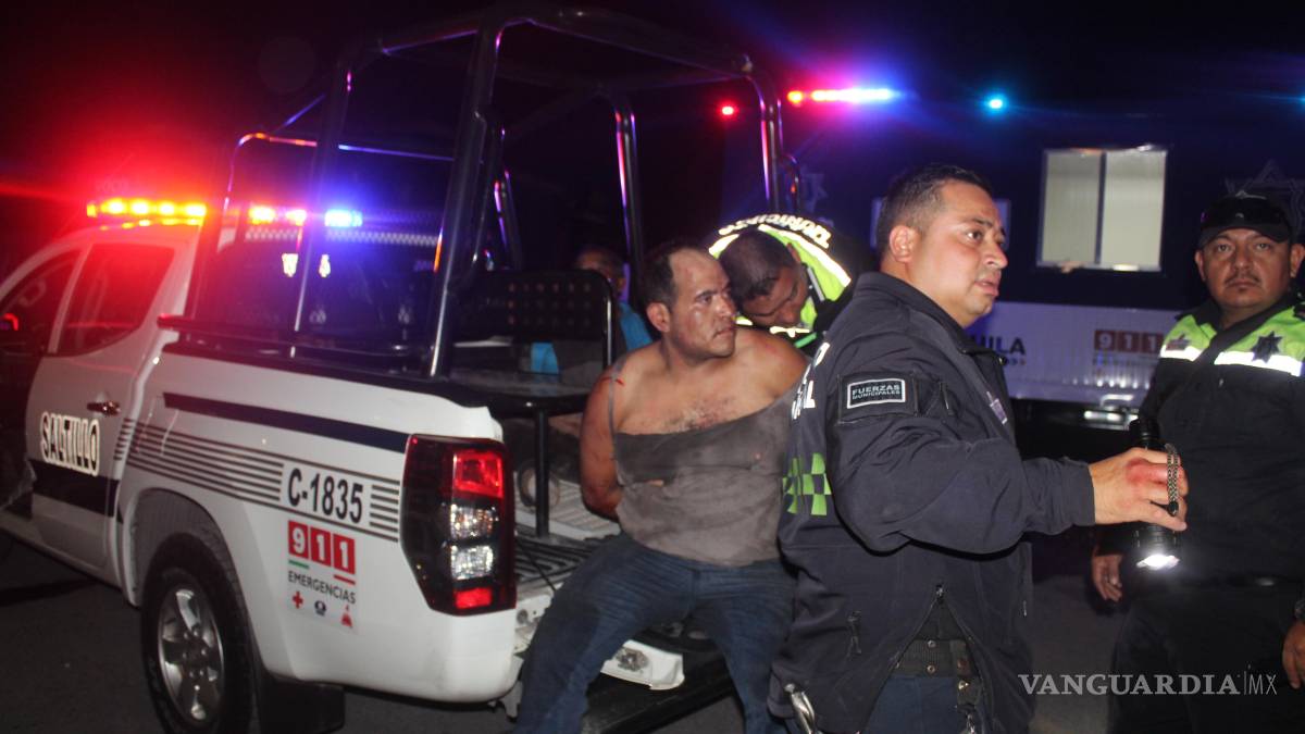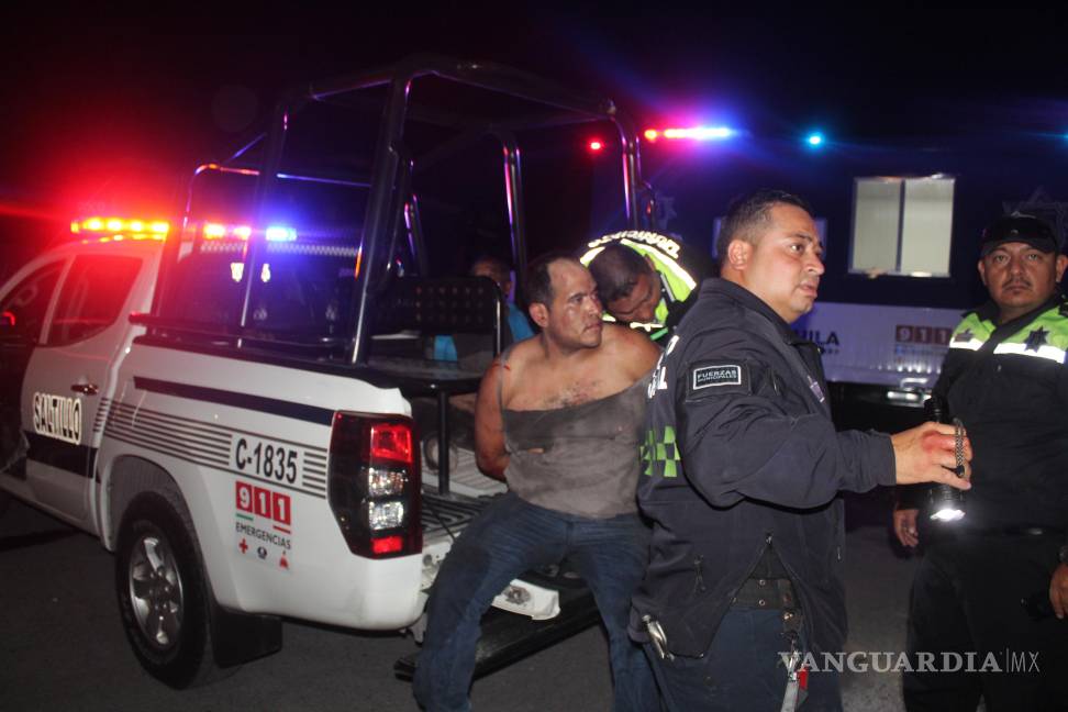 Un padre y su hijo fueron detenidos mediante el uso de la fuerza pública por elementos de Tránsito Municipal de Saltillo, luego de una persecución que culminó frente al fraccionamiento Puerta del Sol, al norte de la ciudad.