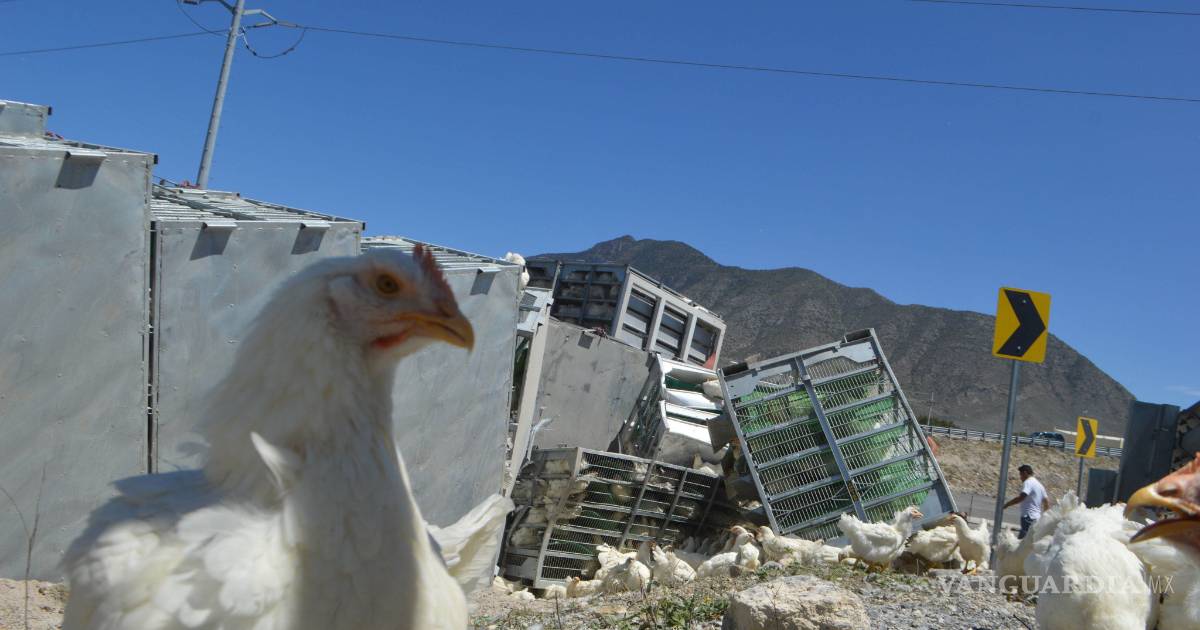 Cientos de pollos quedaron regados en el piso, unos cuantos murieron bajo el vehículo y algunos más fueron robados tras percance en carretera