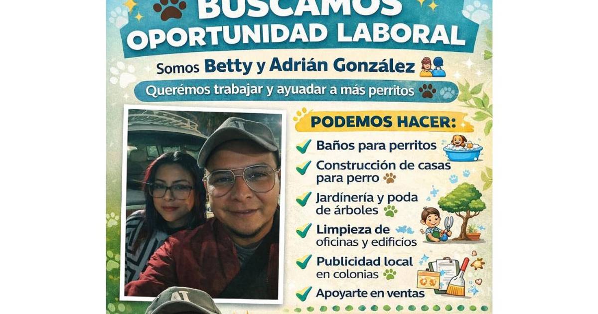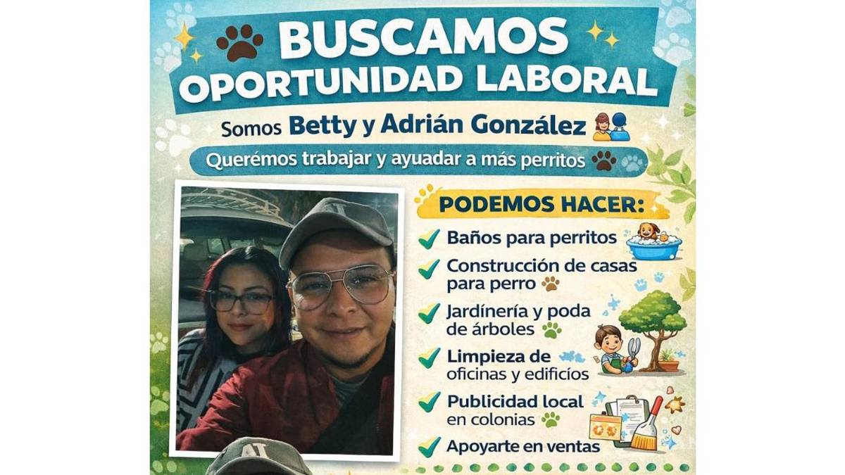 Se trata de Betty y Adrián González, quienes dieron a conocer su situación mediante una publicación en la que explican que su iniciativa de abrir una estética canina no pudo llevarse a cabo. Ante este escenario, ambos buscan incorporarse a algún equipo de trabajo o negocio que les permita generar ingresos y, al mismo tiempo, continuar con su labor de ayuda hacia animales sin hogar.