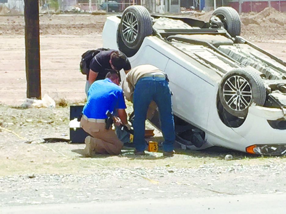 El vehículo salió de la carpeta asfáltica y al impactar contra un montículo de tierra, terminó volcado; los oficiales solicitaron una ambulancia.