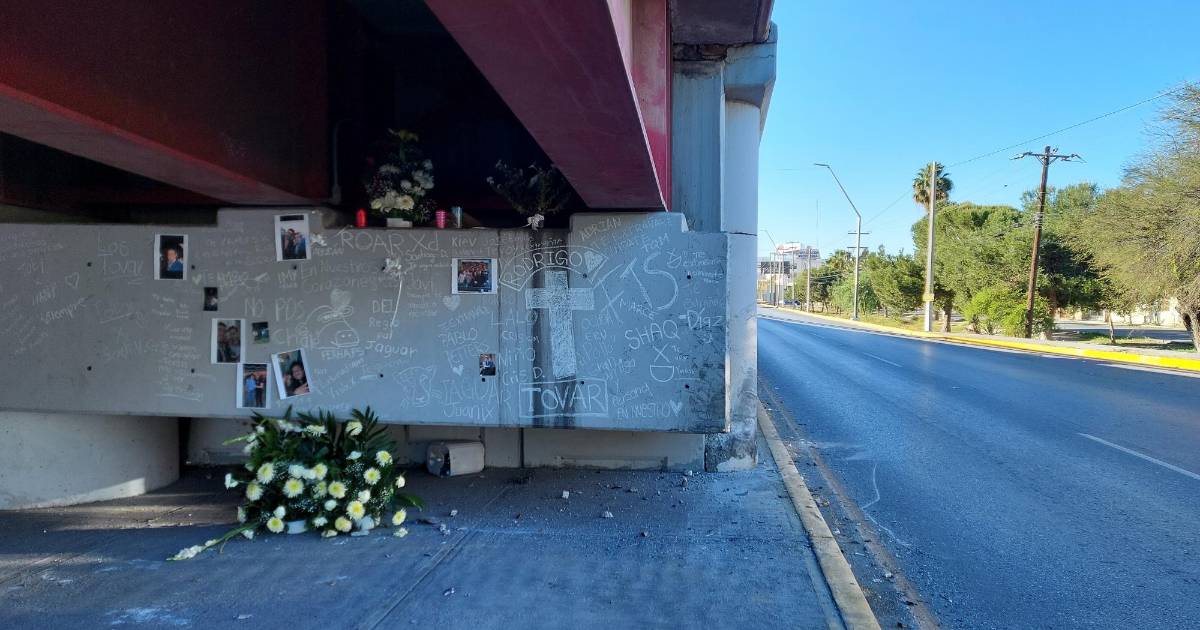 En tanto, algunas fotografías pegadas en el concreto acompañan los arreglos florales puestos en el sitio. Con gis blanco, se escribieron y dibujaron mensajes para rendir homenaje y recordar a Rodrigo. “Te extrañaré”, se lee en uno de los textos.
