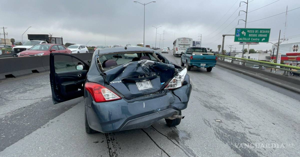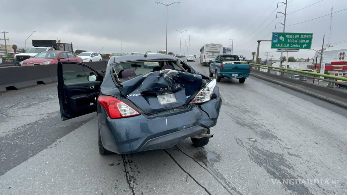 Una mujer que perdió el control de su vehículo terminó por chocar contra un muro de contención y posteriormente su auto fue impactado por un tráiler la mañana de este lunes en el periférico Luis Echeverría Álvarez, en los carriles con dirección a Otilio González en Saltillo.