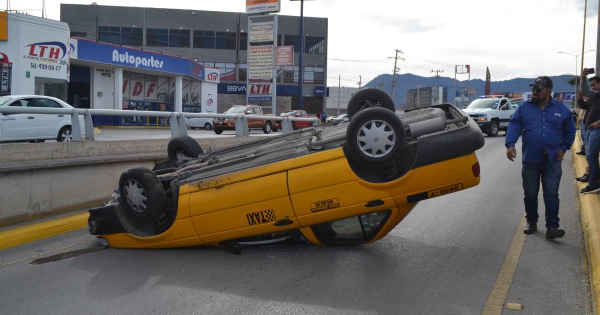 Una distracción al volante ocasionó que un taxista perdiera el control de su unidad y terminara volcado sobre Nazario Ortiz Garza.