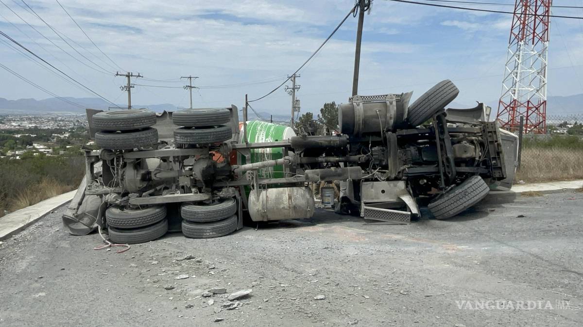Pierde el control y vuelca revolvedora al sur de Saltillo; conductor huye