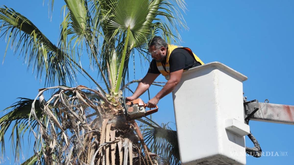 Como parte de labores de mantenimiento urbano en Saltillo, el Ayuntamiento realizó trabajos de poda en palmas ubicadas sobre el camellón central del bulevar Venustiano Carranza, con el objetivo de mejorar la visibilidad y reducir riesgos para peatones y automovilistas.
