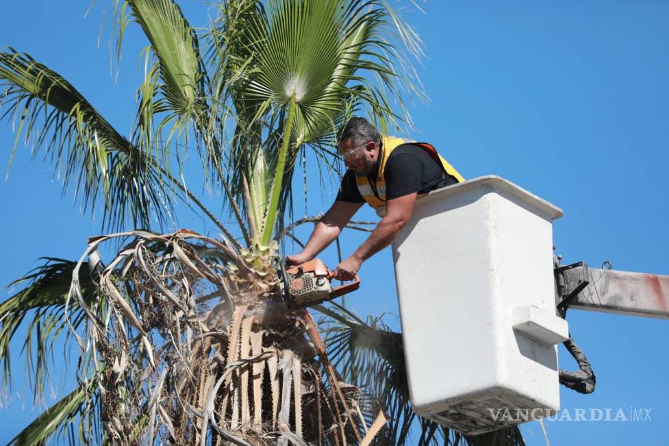 Podan palmas en V. Carranza para mejorar visibilidad y seguridad vial en Saltillo
