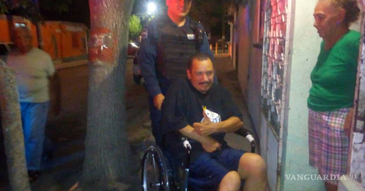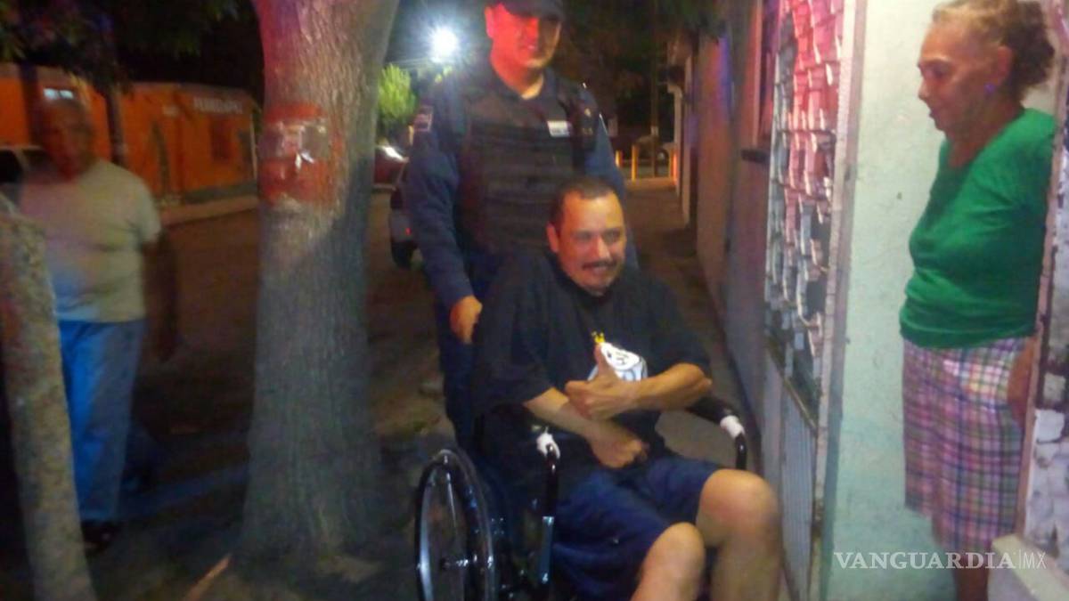 Policías de Saltillo dan apoyo a joven enfermo de Parkinson y le donan una silla de ruedas