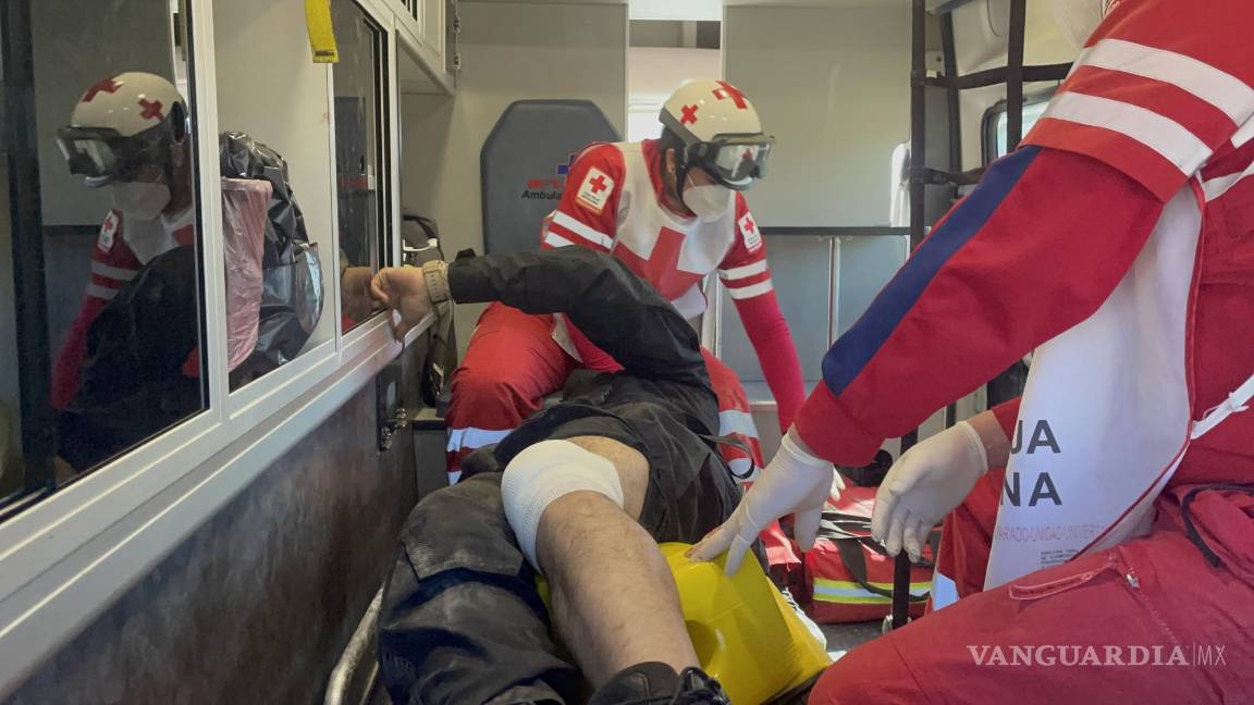 Un incidente durante una persecución dejó a un miembro de la Policía Civil de Coahuila con una probable fractura en la pierna izquierda tras caer desde una altura aproximada de 3 metros.