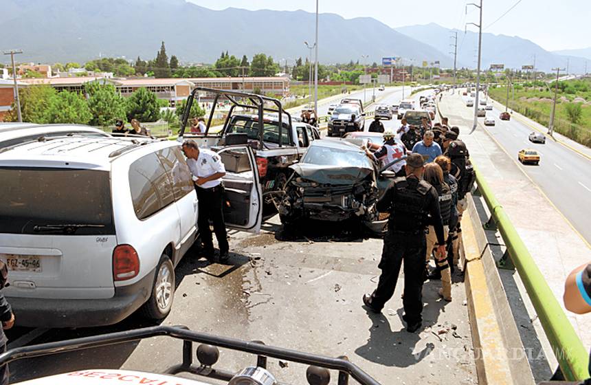 Policía estatal ocasiona choque múltiple en Saltillo