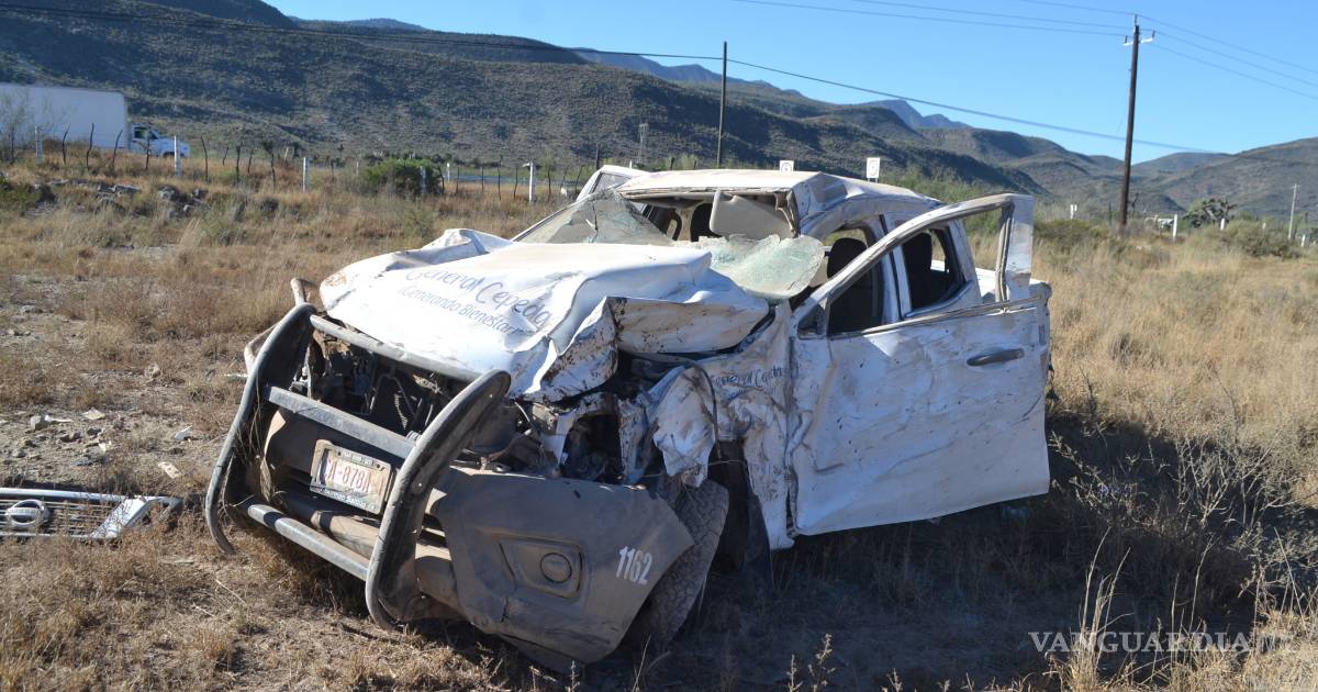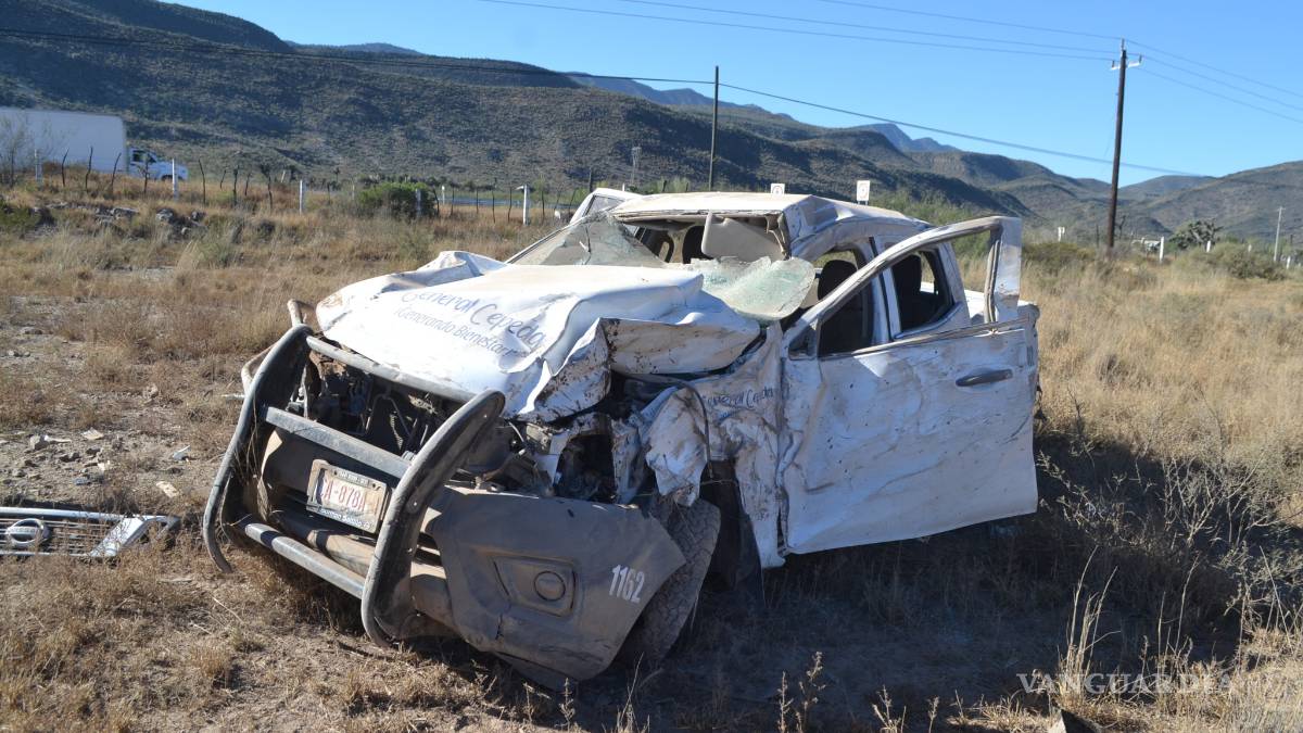 Una camioneta de Seguridad Pública de General Cepeda, con dos elementos, volcó a un costado de la carretera Saltillo-Torreón; presuntamente la unidad iba a exceso de velocidad y el conductor en estado de ebriedad.
