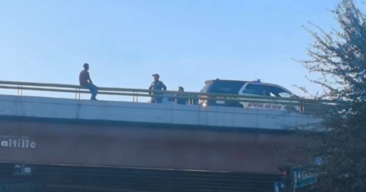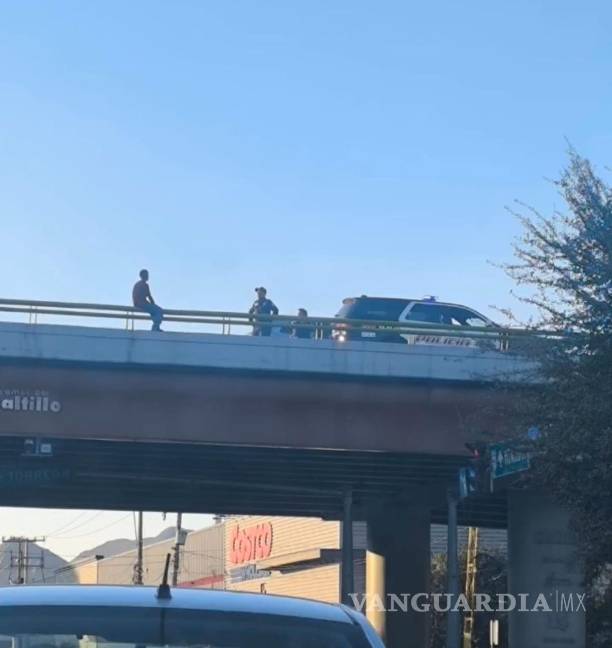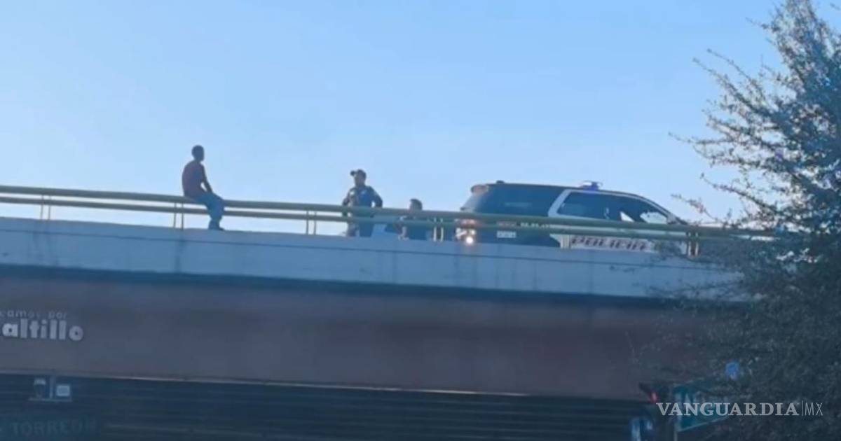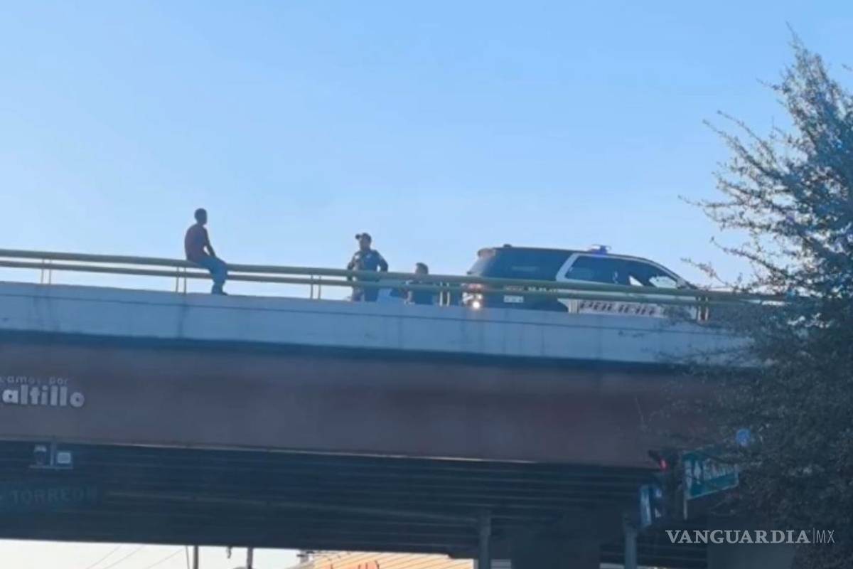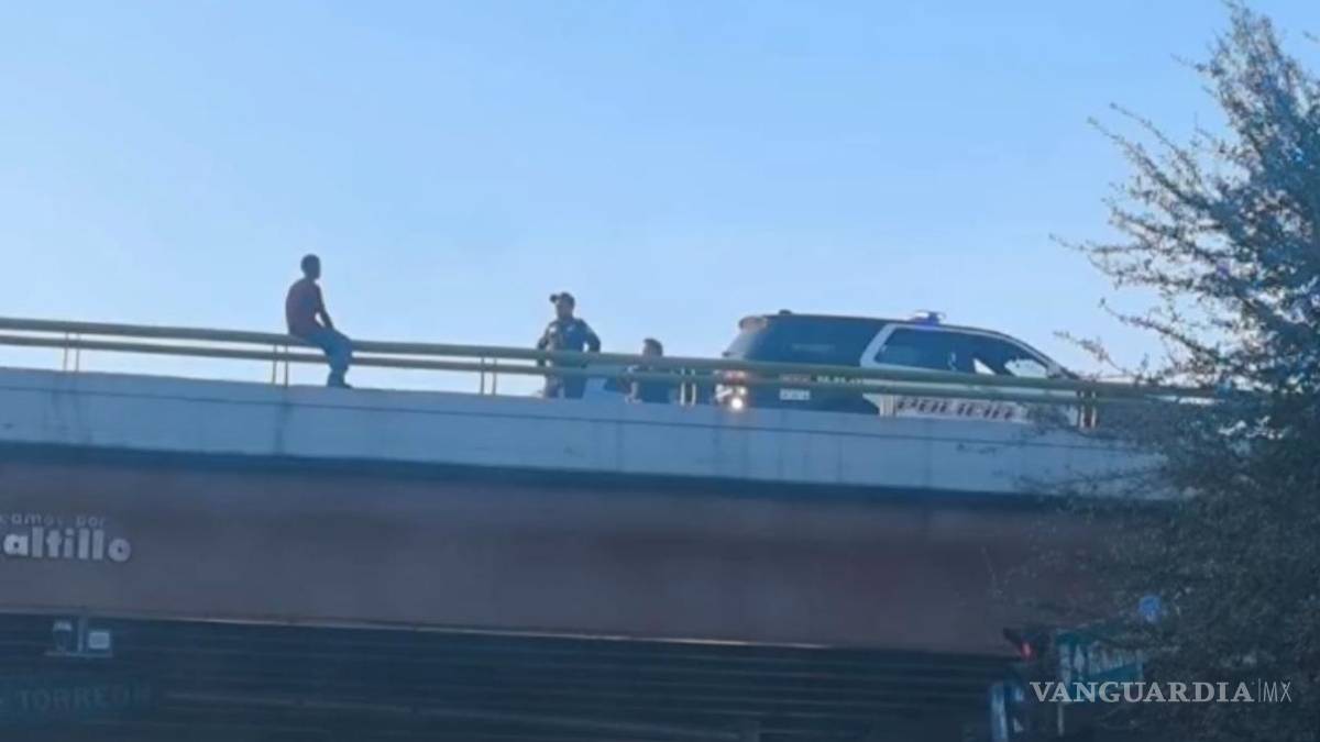 Policías rescatan a joven que intenta lanzarse del puente, en Saltillo