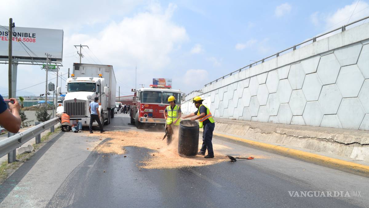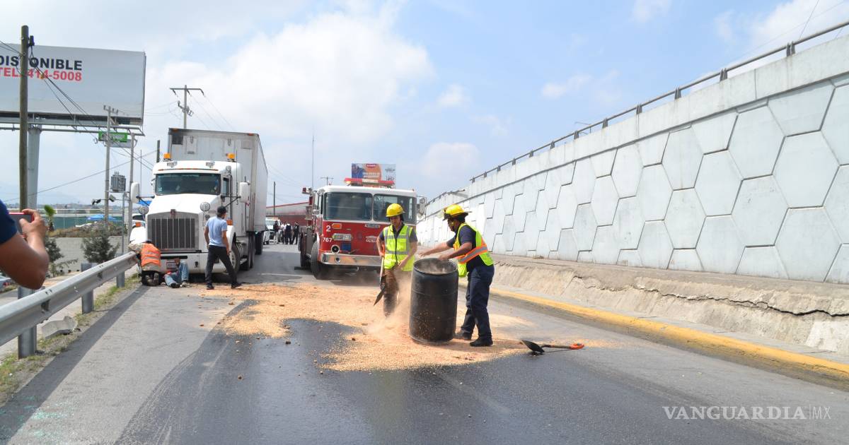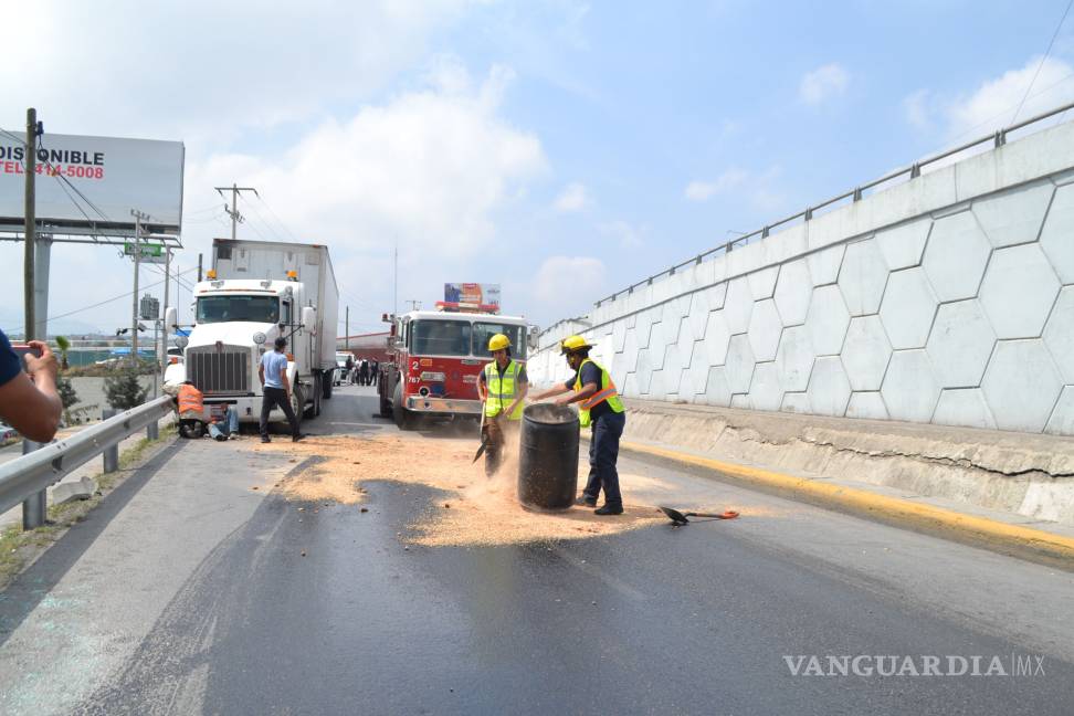 Personal de tránsito llamó a los bomberos para que se colocara material absorbente en al pavimento, para evitar que la vialidad continuara resbaladiza.