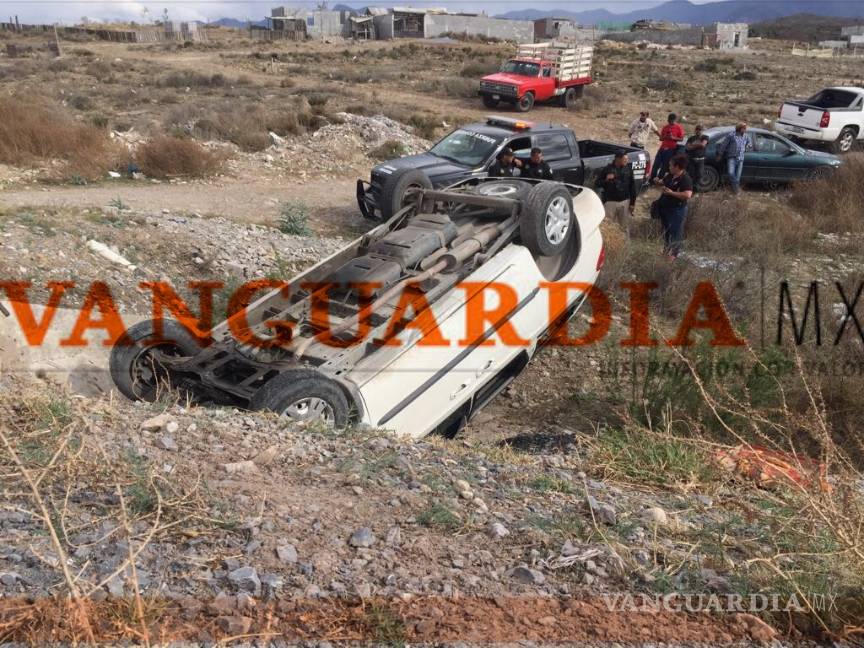 Por exceso de velocidad, mujer vuelca en ejido de Saltillo