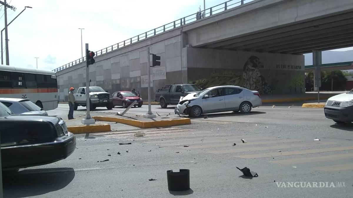 Por exceso de velocidad se impacta en semáforo en avenida de Saltillo