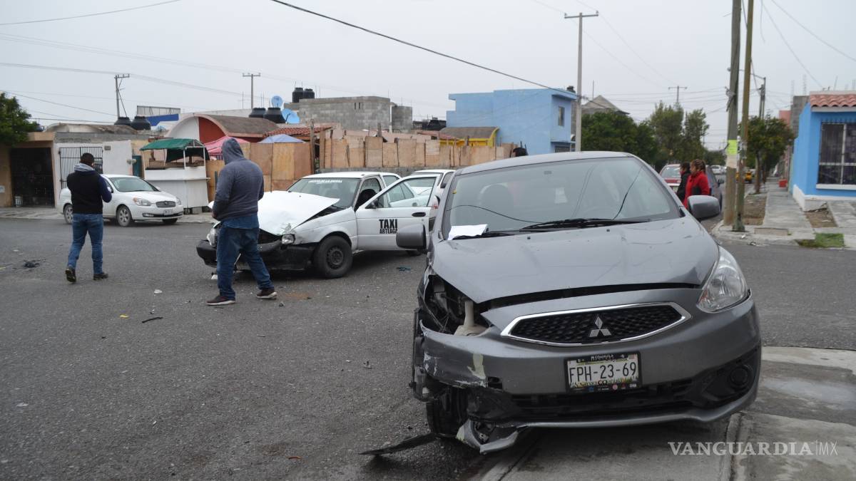 El siniestro se registró alrededor de las 12:15 del mediodía donde el vehículo Mitsubishi Mirage con placas de circulación FPH 2369 circulaba por Mezquite y en el cruce con Santa Patricia fue golpeado por un taxi.