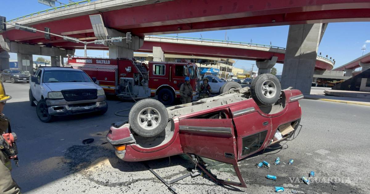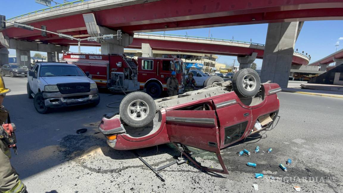 Por intentar ganarle al rojo, causa choque y vuelca camioneta en Saltillo; deja una mujer lesionada
