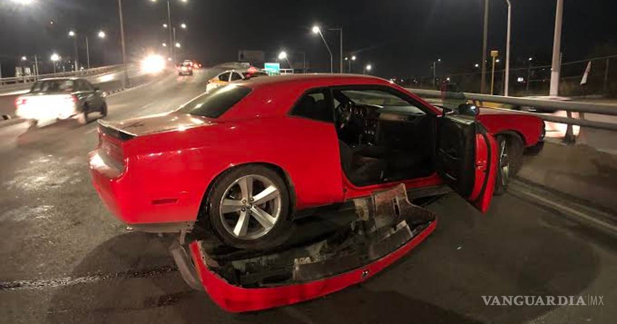 Por 'rápido y furioso' destroza su Dodge Challenger en Saltillo; brinca camellón y choca a taxista