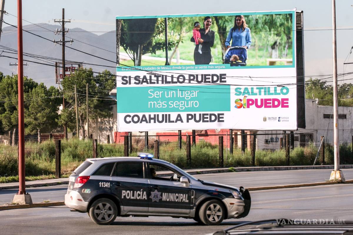 El mensaje fue colocado en una estructura ubicada sobre Jesús Valdés Sánchez, casi esquina con periférico Luis Echeverría Álvarez. “Si Saltillo puede ser un lugar más seguro, Coahuila puede”, es el texto que aparece en el espectacular.