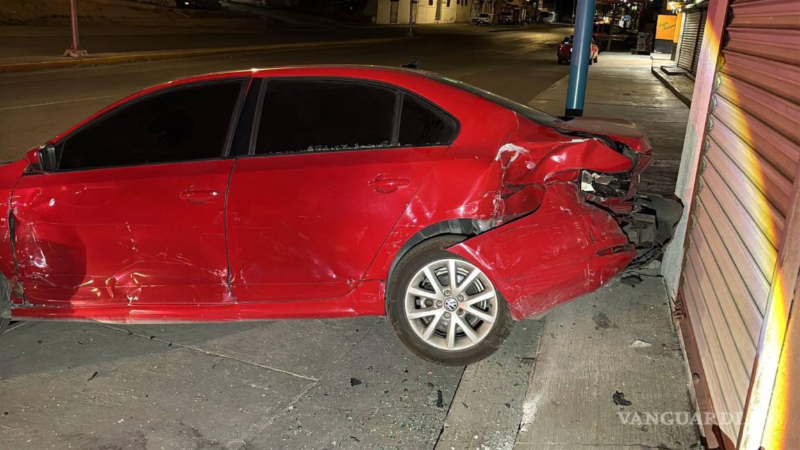 Presuntamente ebrio derrapa, impacta auto y se estrella contra comercio en Saltillo