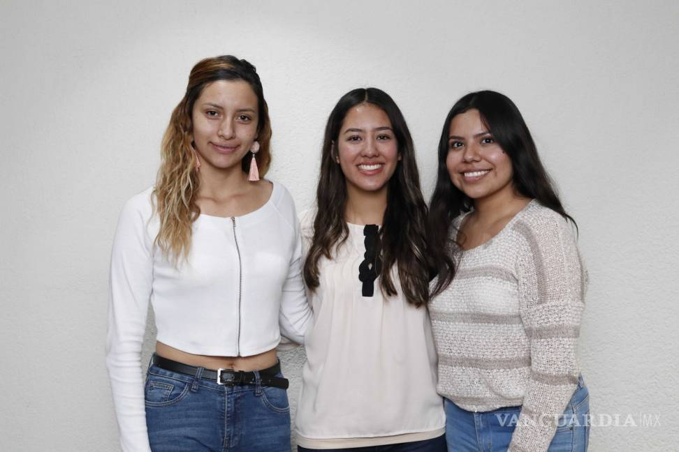 Las estudiantes del primer semestre de la Facultad de Jurisprudencia de la UAdeC, Sheila Marisol, Merari Jaqueline Mata y Wendy García, quienes tiene la intención de informar a los ciudadanos de cómo empoderarse y realizar propuestas para modificar las leyes que nos rigen.